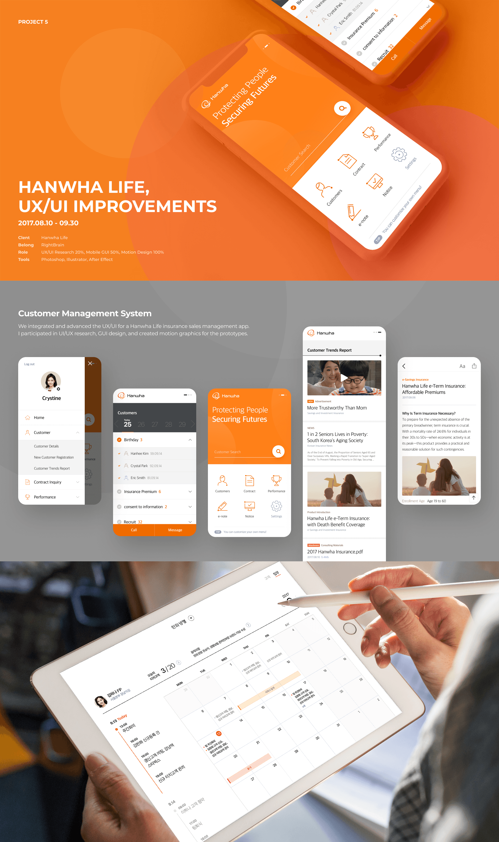 We integrated and advanced the UX/UI for a Hanwha Life insurance sales management app.
